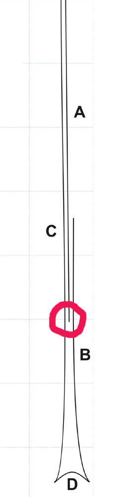 Dann sehe ich ein zu kurzes Teil mit der Narbenseite oben........ ???