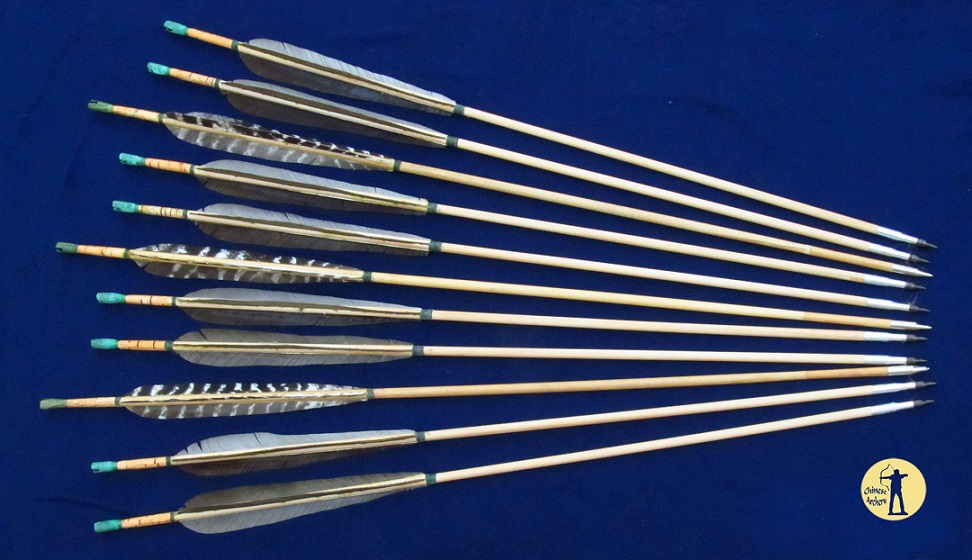 Holzpfeile im mandschurischen Stil für den Übungs- sowie Turnierbetrieb in Anlehnung an historische Vorbilder.