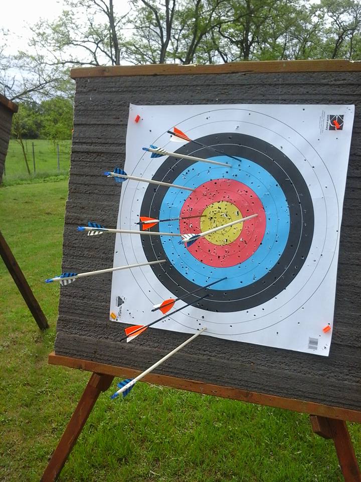 Nach etwas Übung schaffe ich die 40 Meter mit meinen 30# Langbogen und den selbstgebauten Pfeilen auch schon recht gut.