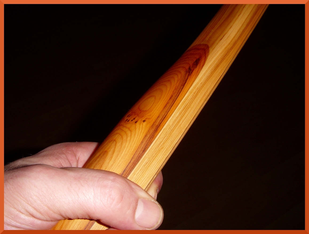 Etwas anders als bei den bisherigen Bögen ist das Eibenholz selbst. Es ist eine komplette Kernbohle einer Eibe aus der Schweiz, gewachsen auf einer Höhenlage von ca. 1500Meter, bis zu 25Ringe/Zoll und eine Elastizität des Holzes, wie ich sie bisher nicht kannte.