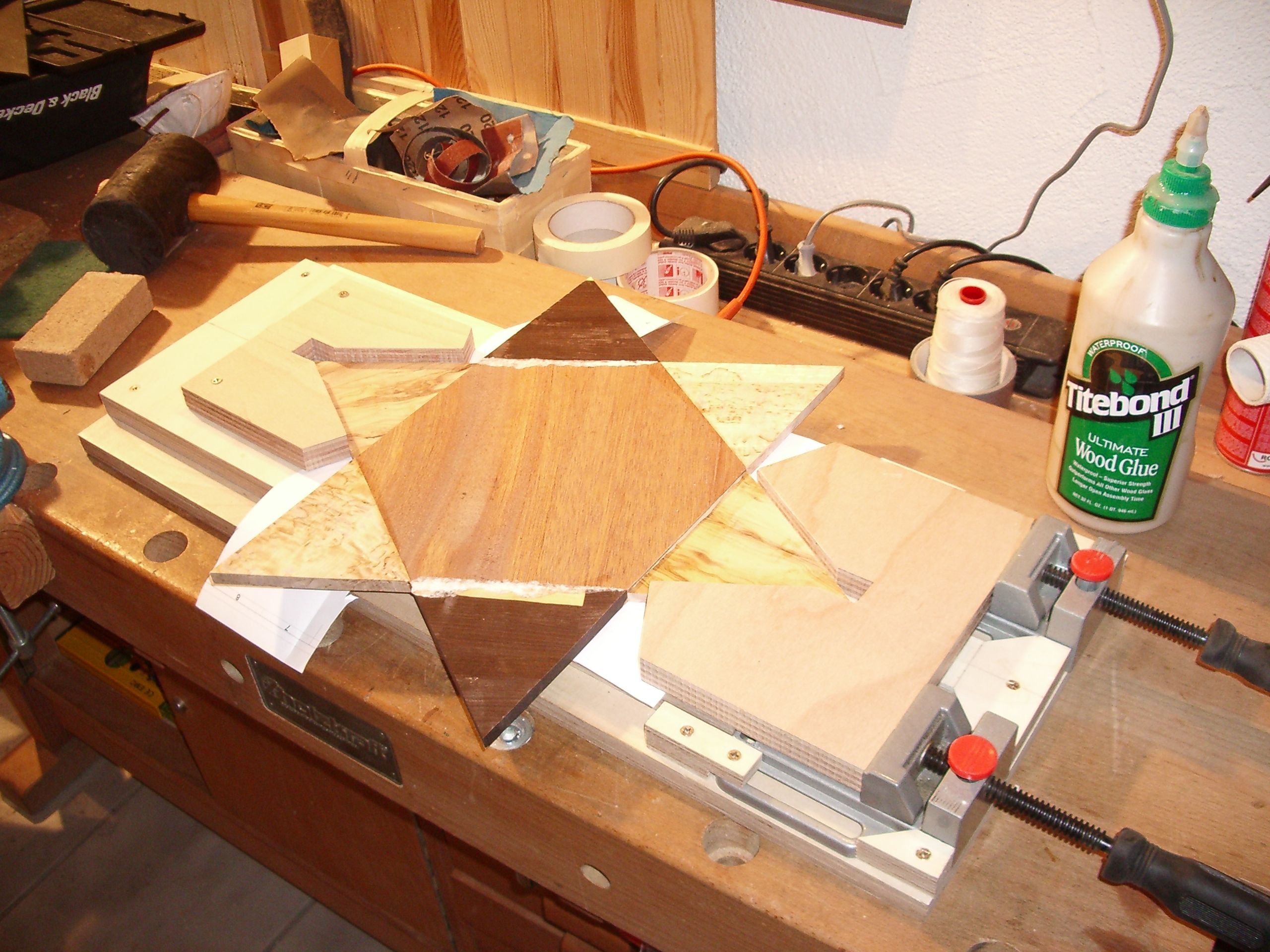 Guten Abned zusammen, freut mich wenns euch gefällt. Der Stern habe ich händisch eingepasst ( nicht gefräst) würde ich nicht nochmal so machen ;-) Die Perlmuttaugen habe ich gebohrt. Habe voher von dem ganzen Spiel ein Sketchup Modell mit Zeichnungen erstellt also wirklich selbst gemacht und nicht aus dem Handel