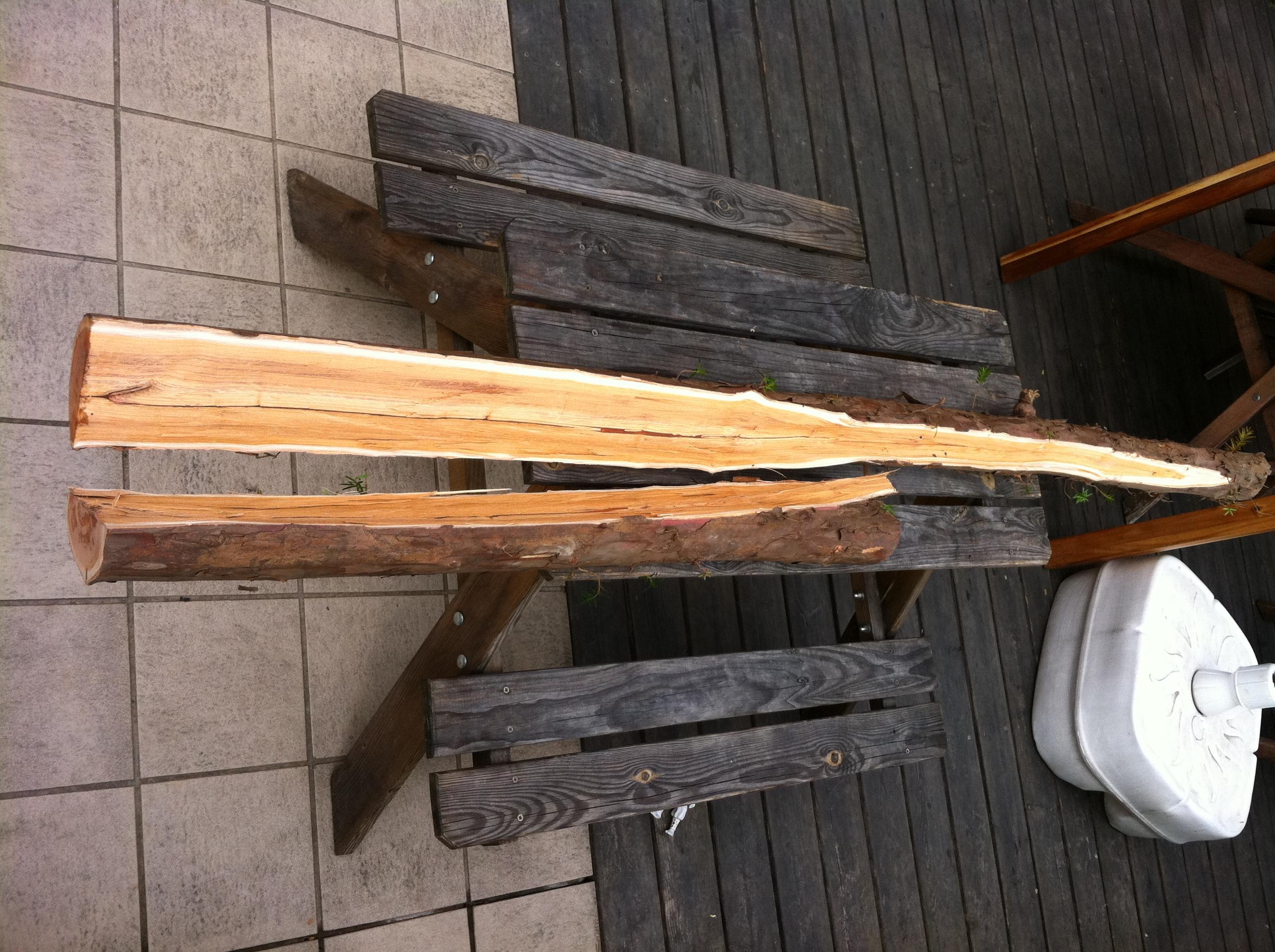 also wenn ich mir das so anschaue, dann liegt das wohl daran, dass er von unten nach oben gespalten hat, bei dem zweite stück was da liegt sieht aus als wäre es ne gabelung des stammes. bin aber nicht sicher