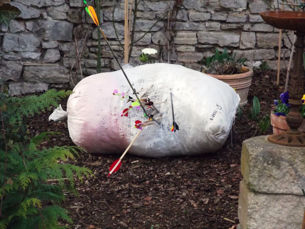 Ich hab endlich wieder angefangen zu trainieren, nach fast 8 monatige Zwangspause und haue ca. 150 pfeile von ca.5 meter, täglich in mein Schiessack(der arme) um ein bischen Muskel wieder aufzubauen. Ich glaub ich sollte ein bischen mehr "streuen"!