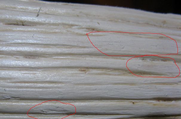 Ich hatte auch mal so ein welliges Stück. Ich hab auch den Bast drauf gelassen. Hab den Bogrn dann eh versaut und wat ganz froh dass ich nicht wo viel Arbeit ins sauber machen gesteckt hab:-)