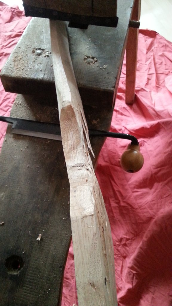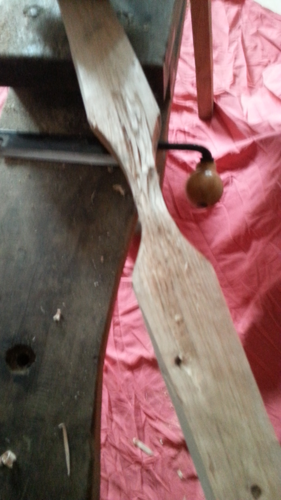 Um den Bogen zu retten habe ich den Griffbereich dann mit der Hufraspel plan geraspelt um eiGriffstück da hinter zu leimen.