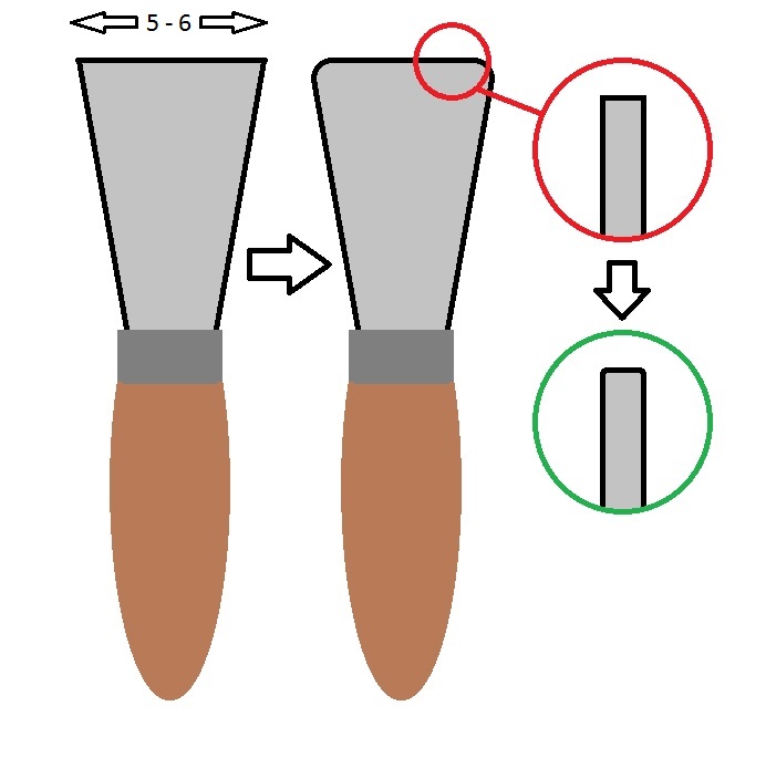 Nimm einen (nicht zu schmalen) Malerspachtel, runde die Ecken ein wenig ab und geh mit feinem Schleifpapier über die Vorderkante, um die ein wenig abzustumpfen, damit er da nicht mehr scharfkantig ist.