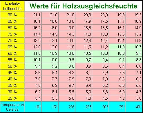 Hier noch eine einfachere Variante zum Ablesen : Dort wo das Holz gelagert und verbaut wird, sollte ein Hygrometer vorhanden sein.