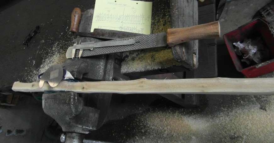 Werkzeuge: Zieheisen, Ziehklinge, Schiebelehre, Hufraspel, Leim.