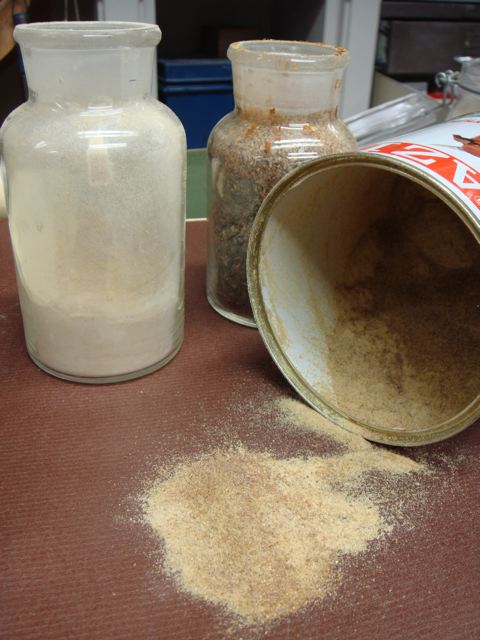 Mit dem Pistill durch ein Sieb gerieben gibt schönes körniges Pulver, das noch knirschig ist beim Auftragen.