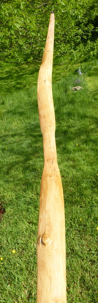 Der Ast war 190 x 8,5 x 6cm und hatte 15cm vor dem unteren Tip einen deflexen 45° Knick und war im oWa so deflex, dass ich beides dämpfen mußte. Unten ist er fast gerade geworden (Kirsche läßt sich sehr gut dämpfen und man muss nicht überbiegen) und oben ist er jetzt geflippt. Dabei kommt dann eine halbwegs harmonische Standhöhe heraus.