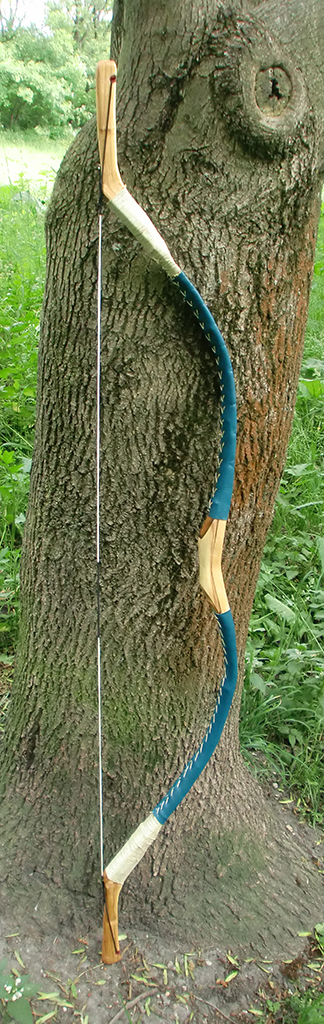 Mein neuestes Werk, über das ich mich besonders freue, weil die Materialauswahl- und Vorbereitung sich über 2 Jahre erstreckt hat. Snake-Jo hat die Anleitung zur Verfügung gestellt und mir hat von Anfang an der Zahn getropft, so etwas auch einmal zu probieren. Insgesamt bin ich zufrieden, folgende Probleme sehe ich selbst: Die Form der Siyahs. Sie sind von Anfang bis Ende gleich breit, d.h. der Spleiß ist zu schmal und die Enden zu dick. Das Wickelmaterial ist... naja. Die Wicklung ebenso. Das Griffstück aus Flieder war leider sehr kurz, sodass die Fades sehr steil waren und insgesamt alles beim Kleben problematisch (ca. 2mm Fuge). Insgesamt habe ich ganz viele neue Techniken ausprobiert und von vielem profitiert - selbst Bambuslaminate hergestellt, selbst (über Feuer) getempert, selbst Siyahs gebaut, erster Reflexbogen (der diesen Namen auch verdient) überhaupt und und und... Ich bin zu 85% zufrieden