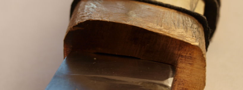 Ich werde versuchen, die Griffoberseite möglichst in einer geraden Linie mit dem Klingenrücken verlaufen zu lassen.