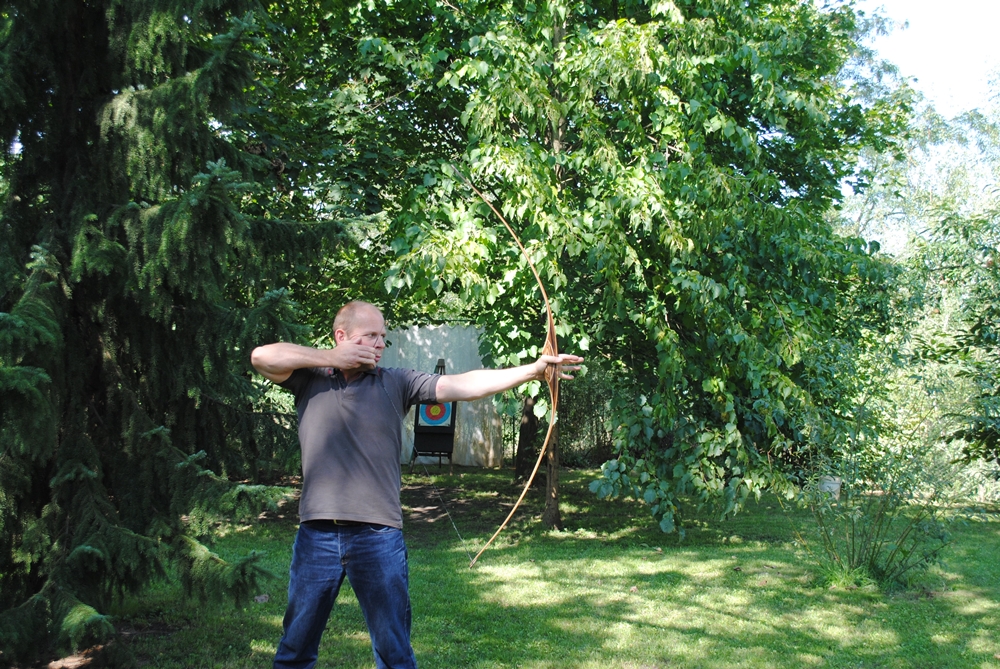 der es mit Bogen schießen versuchen möchte. Da er für einen Anfänger ist habe ich ihn nur 32# stark werden lassen, dass sollte für den Anfang reichen. Auf alle fälle hat er sich über den Bogen sehr gefreut.