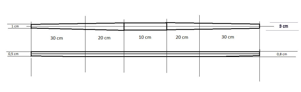 Laß die Enden biegen, also mach ihn so schwach, das die Mitte qausi Steif bleibt, dann die Tips ruhig auf 5 mm Breite und Dicke bringen, unter den Keulen, die da Overlays sind.