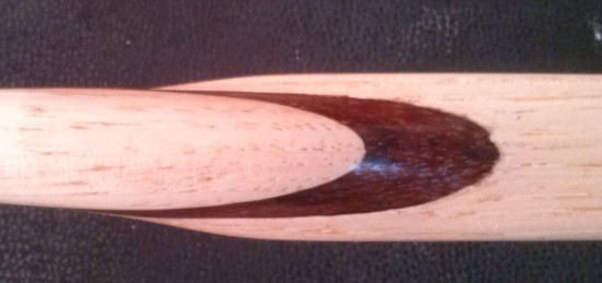 Holzlaminatbogen Rücken Hickory, Bauch Ahorn. Der Bogen ist ohne Griffholz, möchte den nur zum Schluß etwas aufpolstern und umwickeln. Angestrebt ist ein Auszug von 20 Zoll bei ca 10 Pfund.