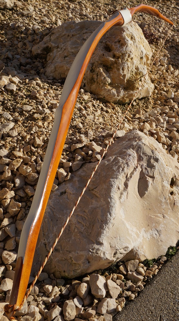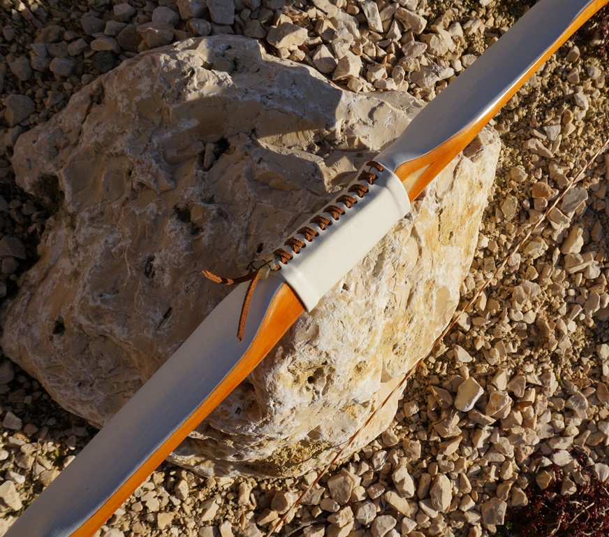 Der Griff ist besonders schön, nein der ganze Bogen, aber das weisse Leder schön gebunden zusammen mit dem weissen Backing gibt ihm etwas sehr edles.