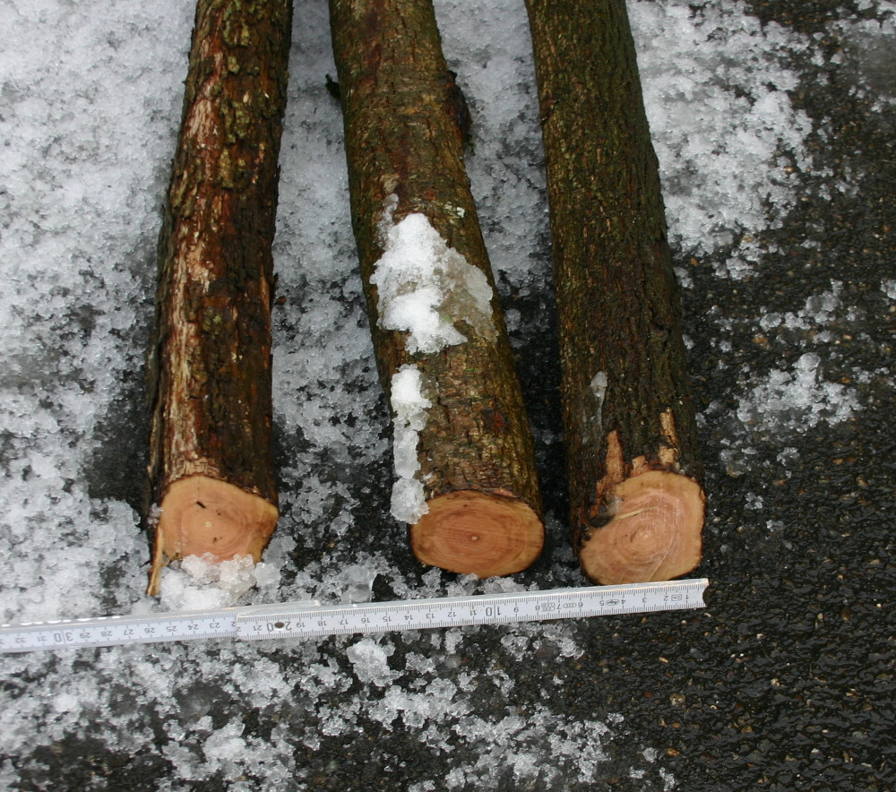 Ebenfalls vorgestern war ich noch auf der Suche nach Hartriegel. Da war das Wetter so bescheiden, dass ich bei den ersten zwei Staves glatt die Bilder vor dem Fällen vergessen habe, sorry. :(