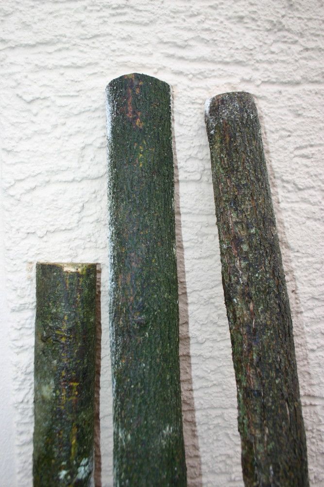 Ich habe die Staves mit der Bandsäge in Form gebracht und mit einer Spachtel entrindet. Der Linke hat ca. 160 cm, die beiden Anderen liegen bei ca. 175 cm.