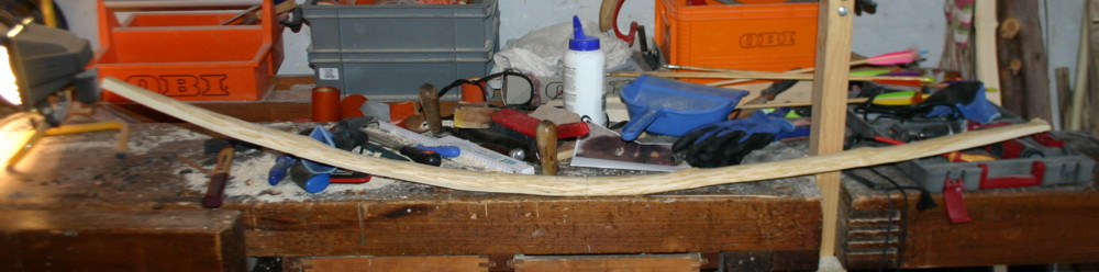 Wie es nun ausschaut, wird der reflexe Wurfarm der obere Wurfarm, da er ein bißchen mehr biegt. Heute nachmittag werde ich mal ein paar Pfeile fliegen lassen und schauen, ob ich es dabei belassen kann.