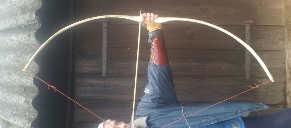 Der Stave ist 161 cm lang. Normalerweise baue ich immer symetrisch, doch diesmal habe ich den Griff etwas versetzt. Der untere Wurfarm ist 78 cm lang, der obere Wurfarm hat 83 cm.
