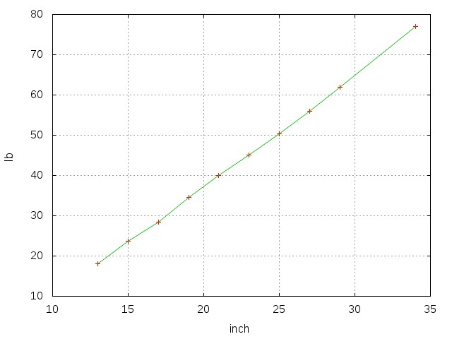 77# @ 34" (der Wert ist aus dem Auszugsdiagramm hochgerechnet, da meine Waage nur bis 66# geht)
