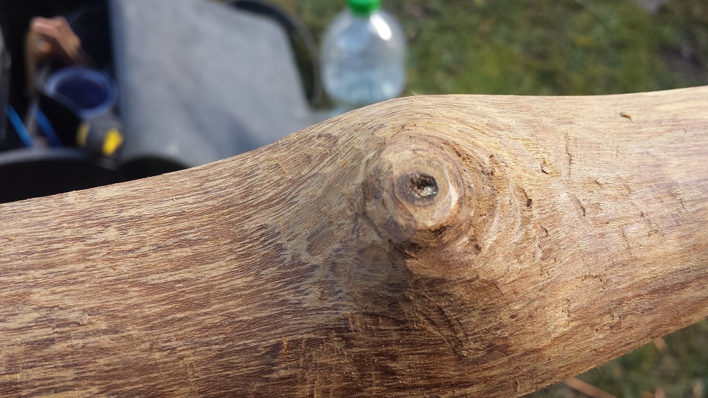 Einer der zwei "Äste". Erfahrungsgemäß sind solche Äste die sich in der Rinde abzeichnen darunter nicht sehr groß