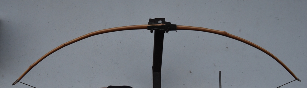 Der untere Wurfarm ist nur ca 1cm kürzer. Ich habe den Bogen extra gleichmässig gemacht um zu sehen wie es mit dem Korrekturtiller gegen die Verdrehung geglückt ist. So wäre der Bogen auch umgekehrt fertig zu bauen gewesen. Jetzt hat sich das so ganz gut ergeben wie er ist. Die Ansicht täuscht ein wenig, weil ich den Bogen zum schiessen immer etwas schräg halte.