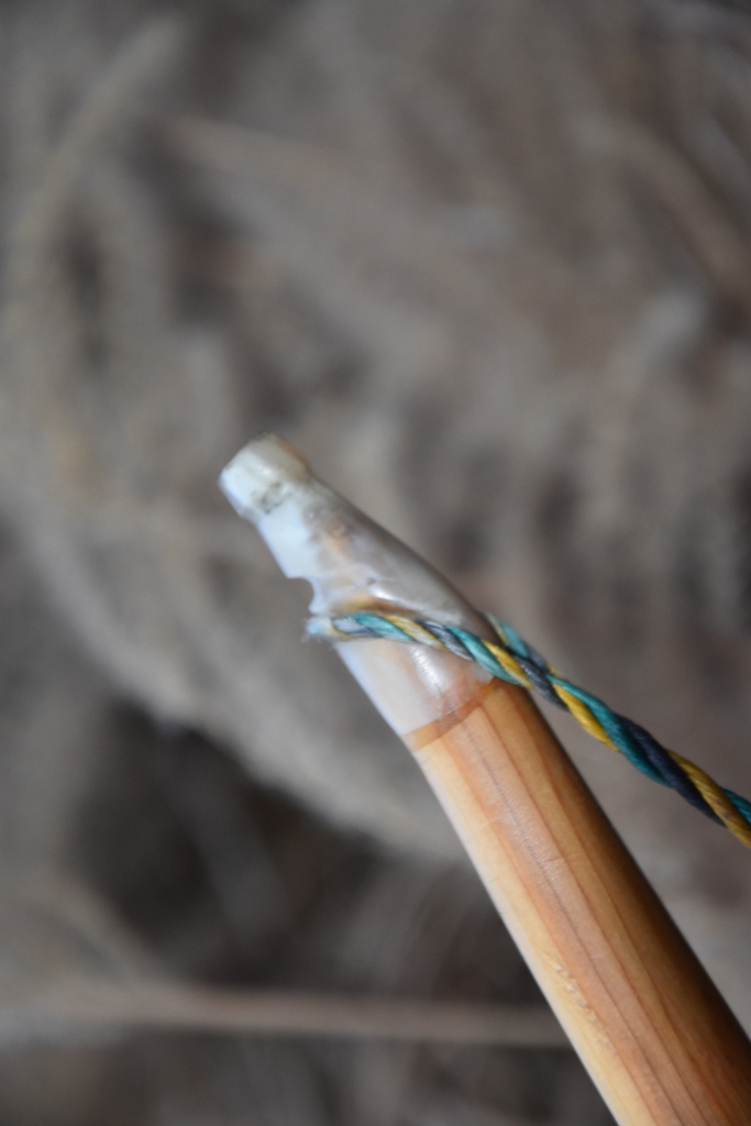 Der Knubbel ist ein echtes Sorgenkind. Er sollte normal mitbiegen so bin ich anfangs der Faser gefolgt. Das war gar nicht so einfach. Denn je länger je mehr hat er sich in seiner wilden Maserung gezeigt, also habe ich den Totast ausgebohrt und einen Zapfen eingeklebt. Das innere sah noch schlimmer aus, das habe ich mit Epoxy verfüllt. So wie es aussieht ist dem immer noch zu wenig. Die Fugen sind schon wieder gebrochen. Ich bin drauf und dran den Zapfen noch einmal auszubohren. Ohne Knubbel fürchte ich hätte der Bogen nicht überlebt.