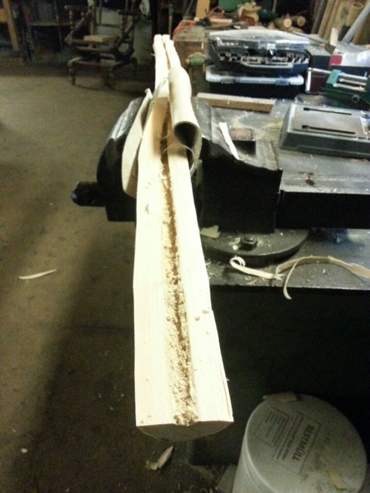 Erstmal den Griff des Hollers etwas verfeinert und gesäubert. Ich denke ich werde in den Markkanal noch ein Stück dunkleres Holz einkleben.