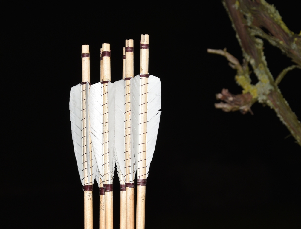 Ich finde, die Herstellung eines solchen Pfeils ist spürbar aufwändiger als der Bau von Standard-Turnierpfeilen mit Plastiknocke. Die durchgehende Wicklung empfand ich als überraschend anstrengend und tricky. Es war aber schön, die ganzen Fertigungsschritte beim Bau eines solchen Pfeils einmal wieder durchzugehen. Bei meinen Schießkünsten werde ich aber wohl eher bei Standardpfeilen mit eher geringem Aufwand bleiben, weil ich doch erheblichen Pfeilverschleiß habe...