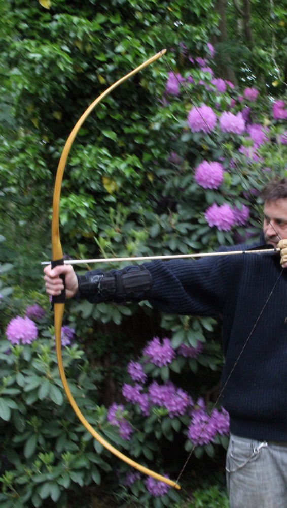 als sich beim Bau herausstellte, dass sich der Stave beim Ausziehen verdreht, war ich anfänglich "nicht gerade begeistert" von dieser Tatsache. Aber zu dem Zeitpunkt als die erste Pfeile durch die Luft flogen und zudem die Sehnenlage genau durch den Griffbereich verlief, konnte ich mich so langsam mit diesem Exoten anfreunden. Jetzt überzeugt der Bogen durch seine Performance und: