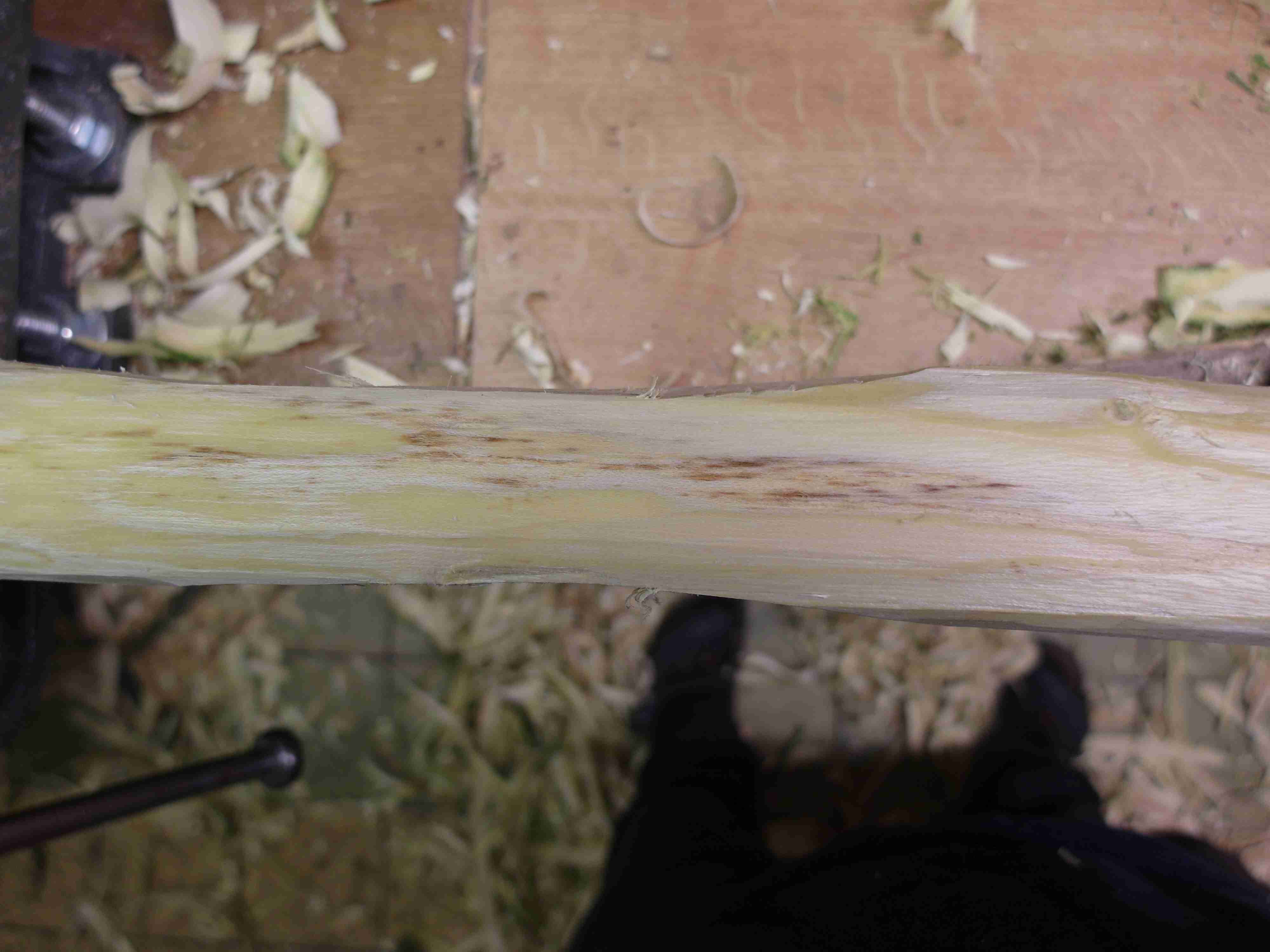 Und nach einem Jahr Arbeit kam eine etwas fleckige Schicht zwischen Frühholz Jahr 1 und Spätholz Jahr 2: Das ließ sich aber mit der Ziehkklinge gut entfernen.