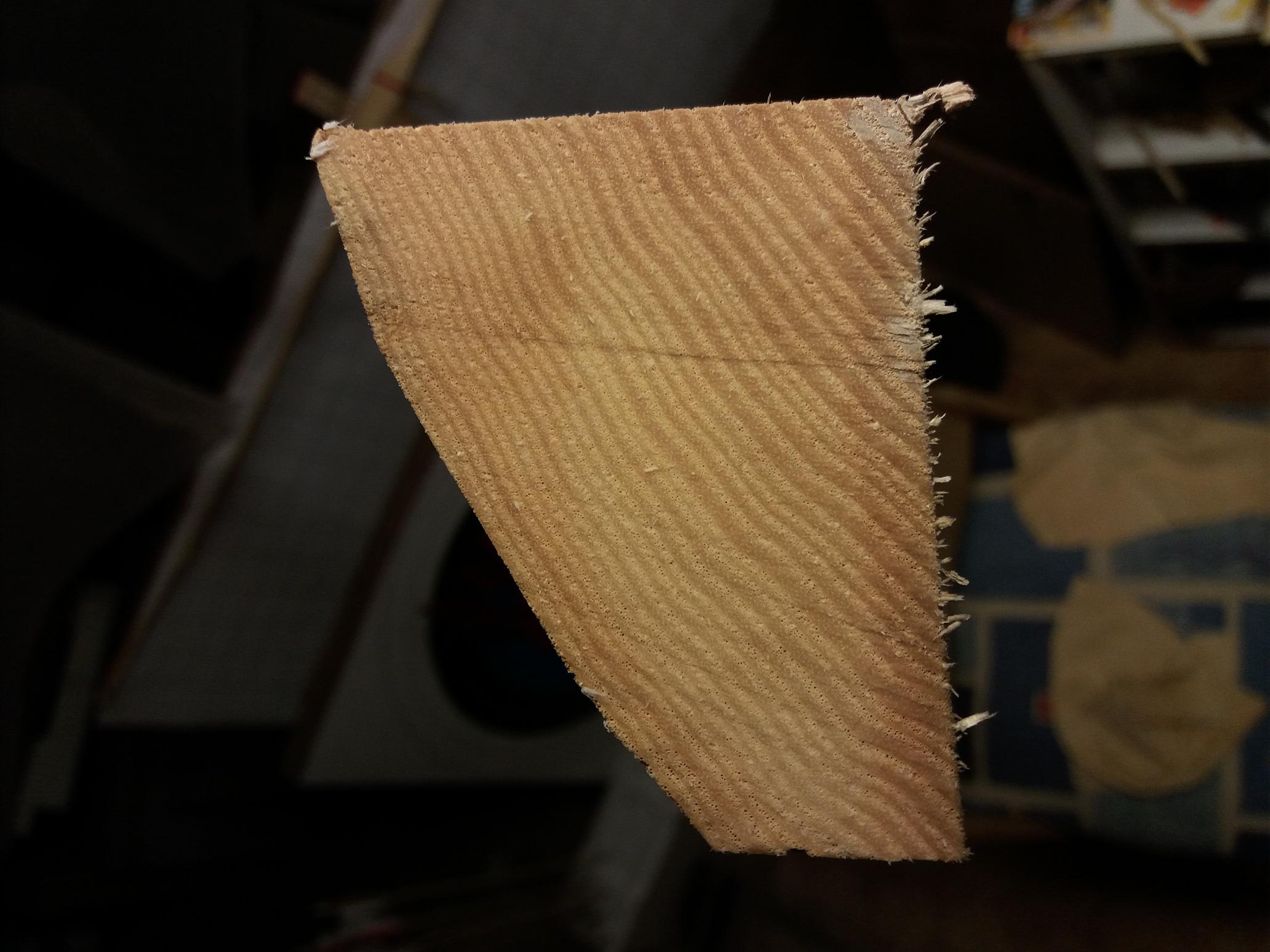 Jahresringe bei Esche freilegen ist nicht einfach, in der Mitte ist der Stave sehr dünn, unter 1,5 cm Dicke wird das nichts.