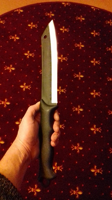 Ok, mein Objekt der Begierde ist eigentlich ein Skrama Haumesser aus Finnland, einem Kollegen hab ich eins besorgt und siehe da, das original Skrama passt fast auf die Hippe.Schnell auf eine Schablone übertragen und als Muster ausschneiden.