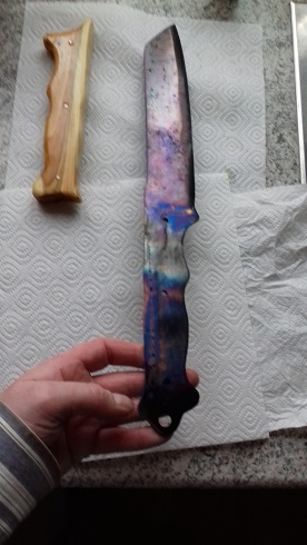 Problem, der Griff der Hippe war leider nur ein Sift, den hab ich dann mit dem Resten des Sägeblattstahls verbreitert also