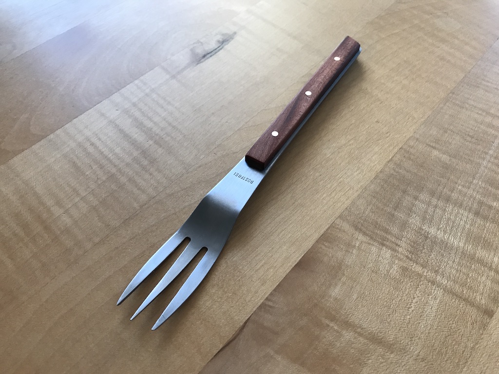 Nicht so direkt ein Messer aber ein Stichwerkzeug. Wieder mal ein Rettungsprojekt. So vor zwei Wochen stand ich bei meiner Schwiegermutter in der Küche, da meinte sie: “Falls Du mal Zeit hättest, könntest Du das richten? Das ist meine Lieblingsgabel, ich benutze die immer um Rühreier aufzuschlagen oder Fleisch in der Pfanne zu wenden. Aber nur wenn Du Zeit hast und es keine Mühe macht“