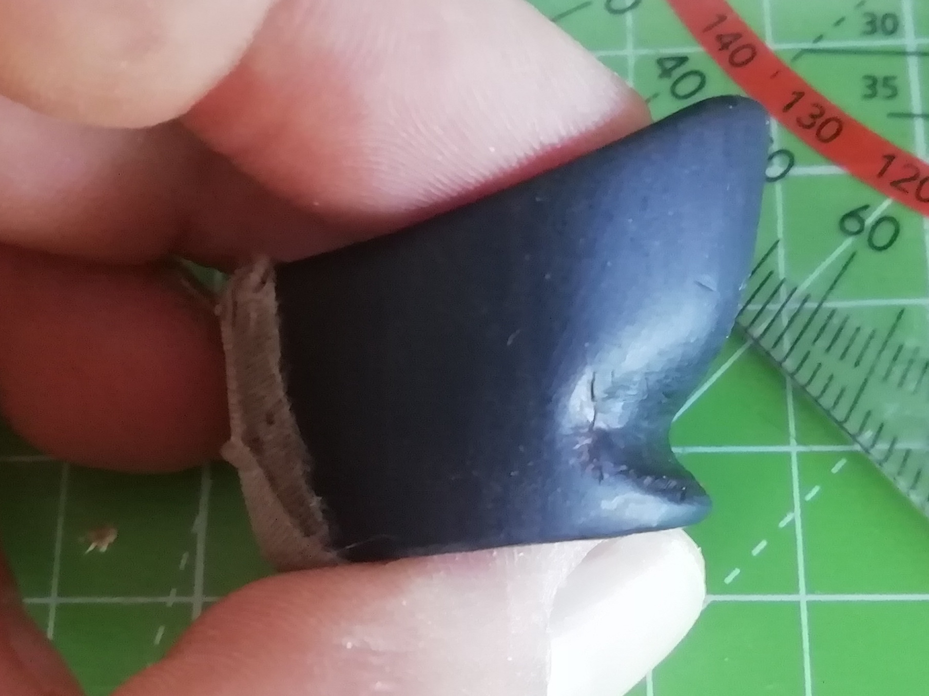 Was MIR zu Beginn etwas gebracht hat war, in den Ring ein sehr dünnes Leder (in meinem Fall Fischleder) einzulegen, das Richtung Daumenwurzel herausragte und so den Druck auf der Haut abzufedern.