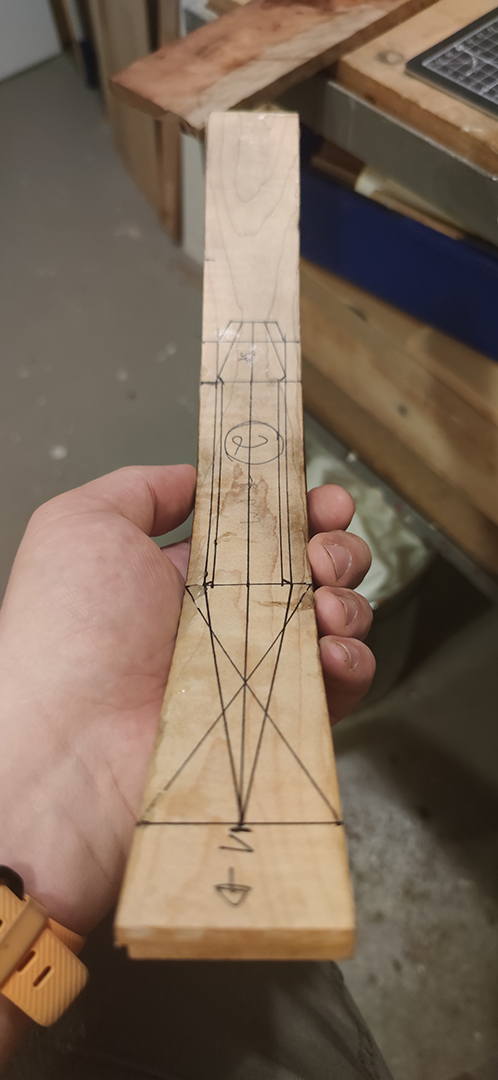 Habe die 5 Holzteile mit V-Spleißen zusammengeklebt mit dem guten Epoxydkleber von Rudi Weik ...