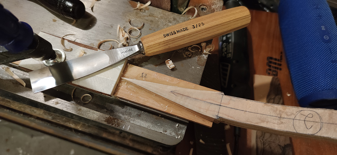 Als Facing habe ich dann 2 Büffelhornleisten genommen, welche ich mit einem Schaber verzahnt habe.