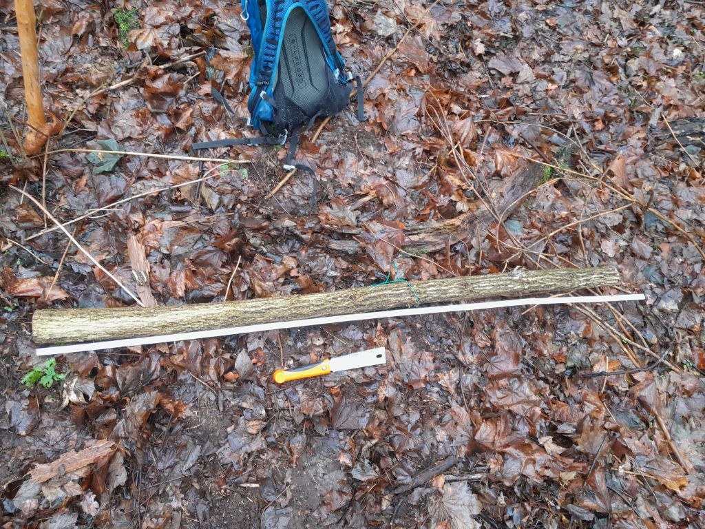 Gerade schnell in der Mittagspause mit der Japansäge in den Wald gezogen und einen von zwei im Sommer ausbaldowerten Hollern geschlagen. Der zweite sah im Sommer noch gut aus, mittlerweile war an einigen Stellen die Rinde schon ab und lustige violette Pilze (vermutlich fleischroter Gallertbecher) sprossen heraus. der war also nix mehr.