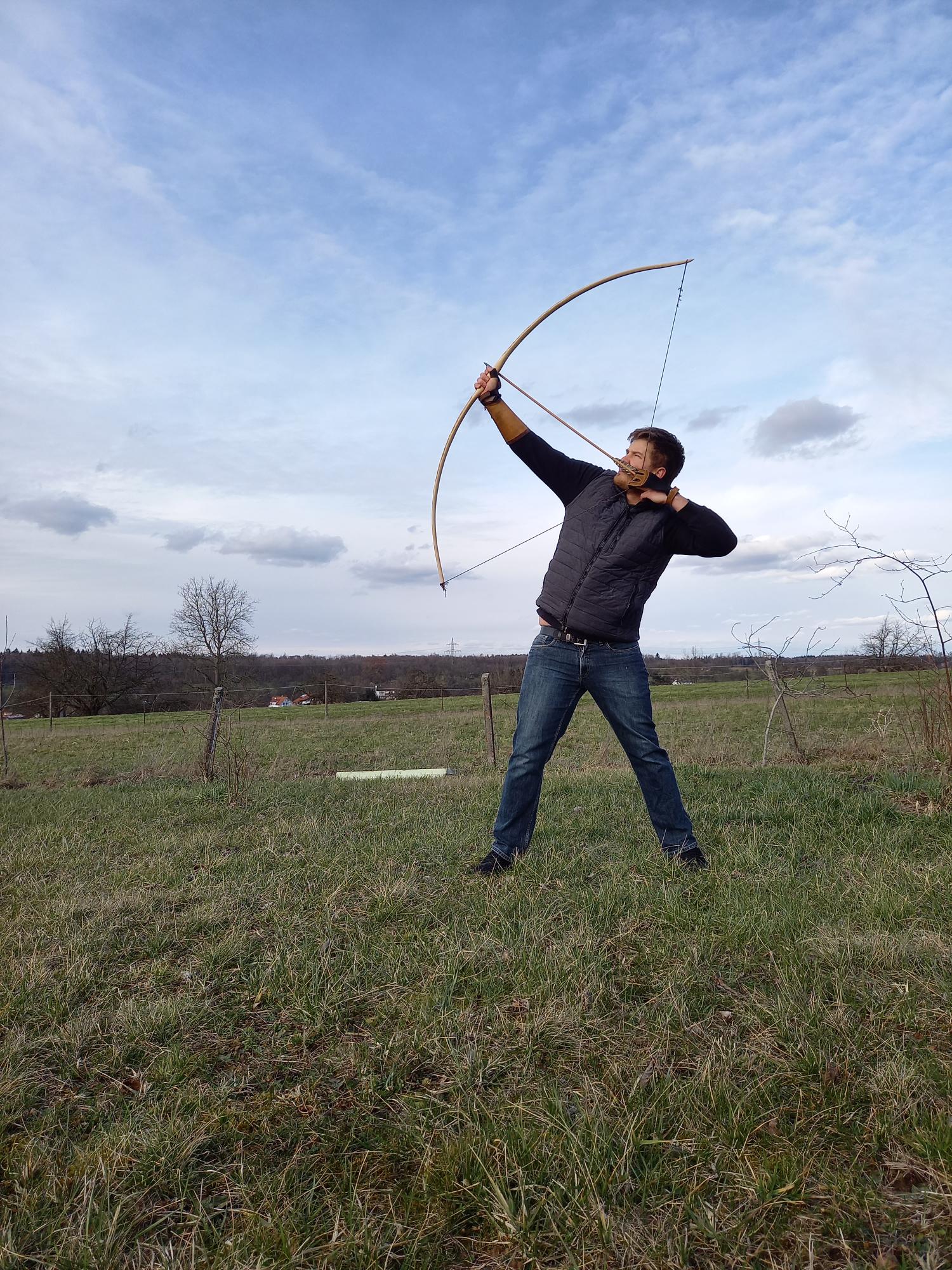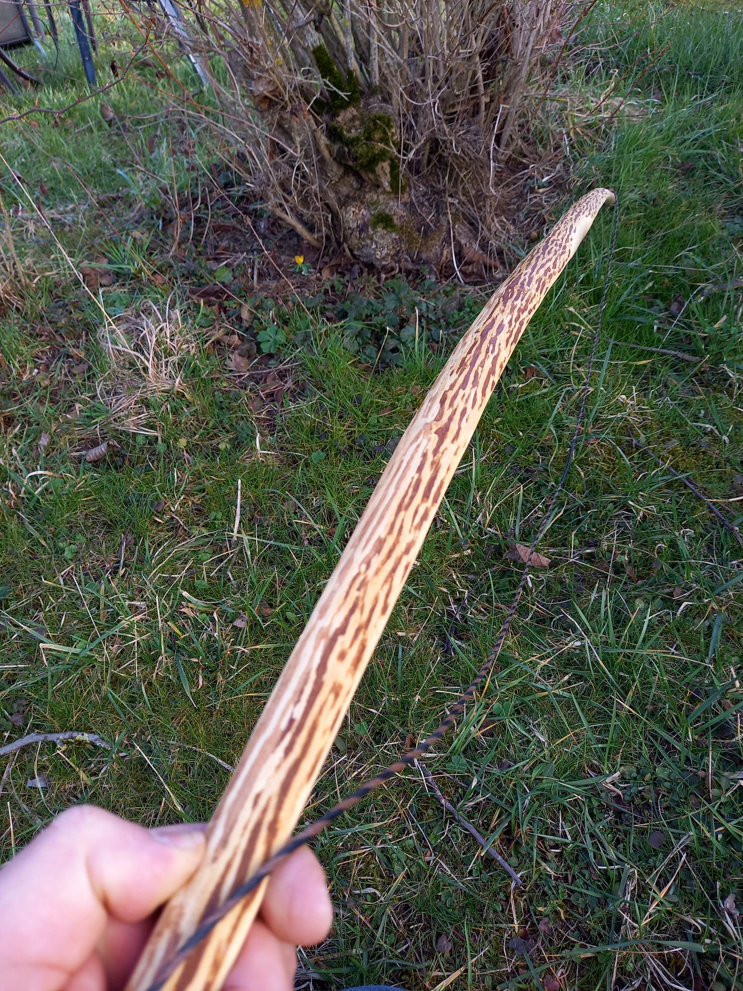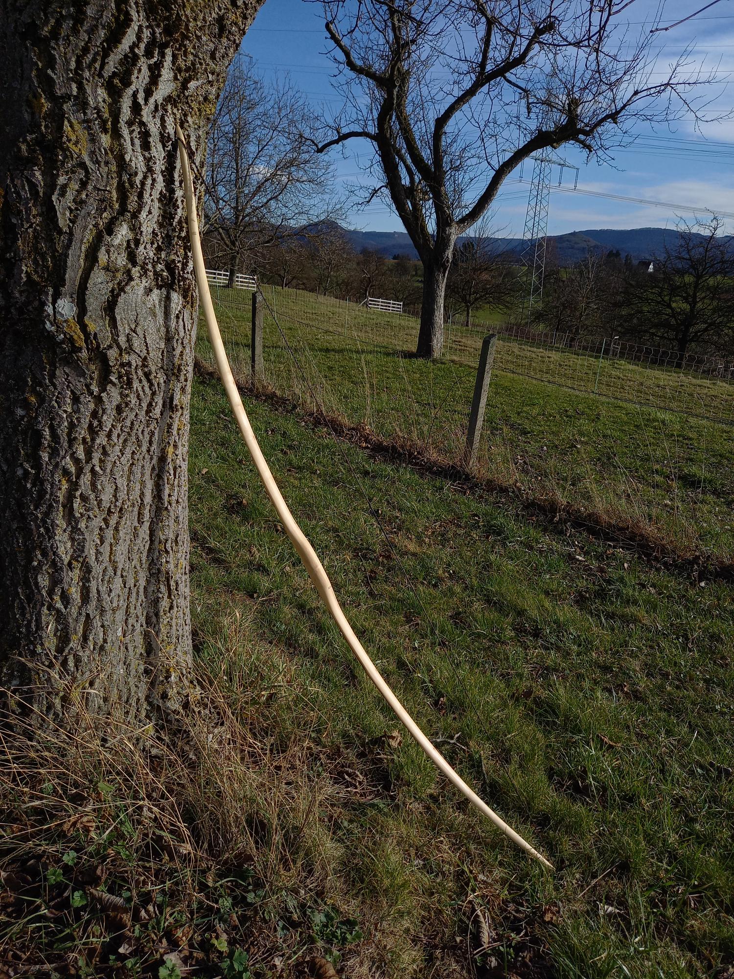 Man sieht aber die zuerst leicht deflex und dann wieder reflexe Stelle ganz gut auf dem Bild wo er aufm Boden liegt (ungespannt).