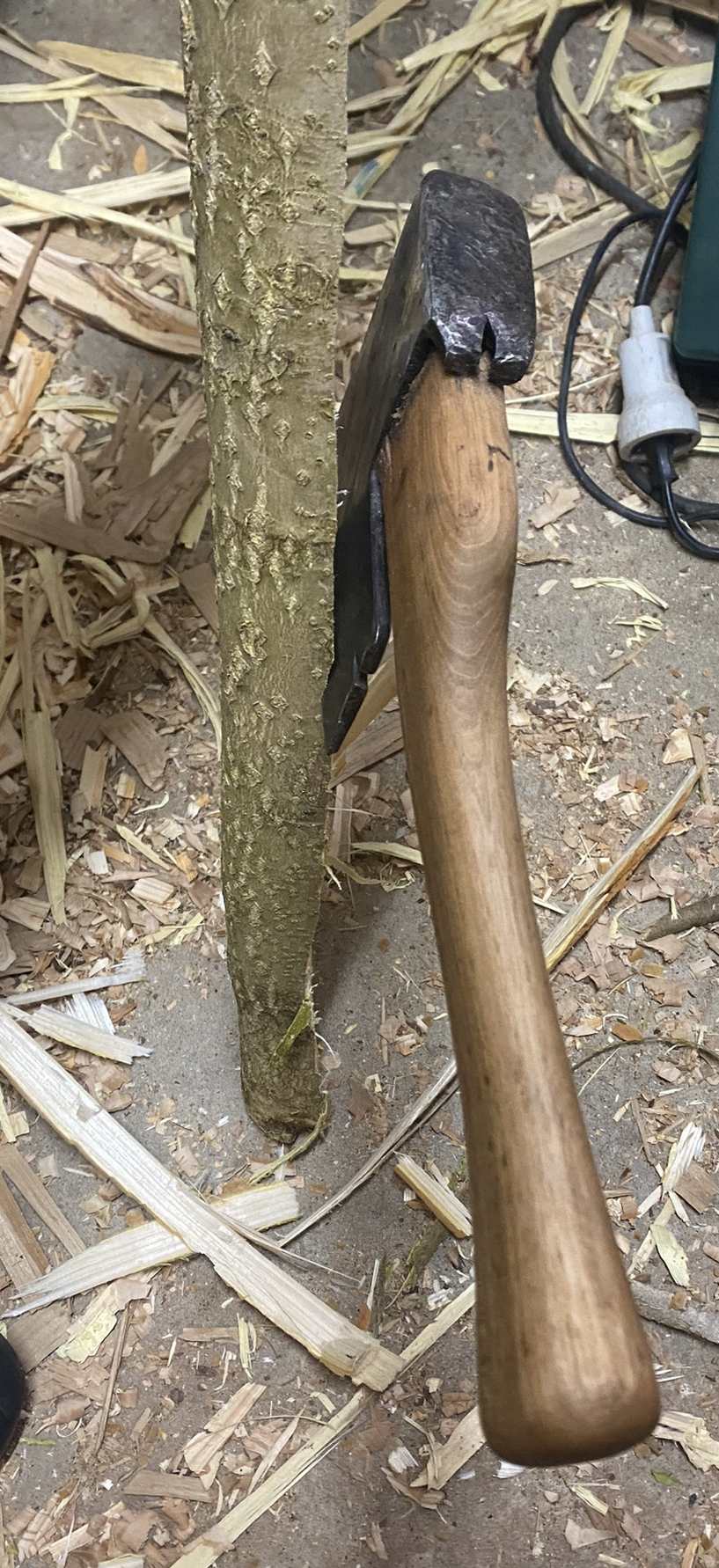 Spalten, ging sehr einfach. Messer einklopfen, dann nur noch nachschieben und um 90° drehen und das Holz reißt auf.