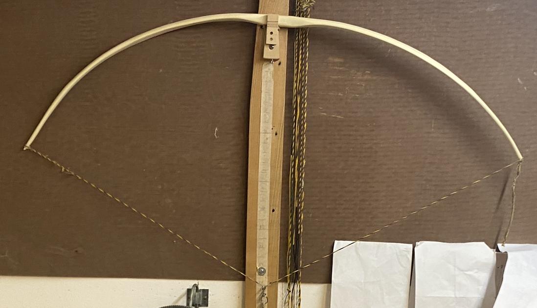 Der Bogen fühlt sich trocken nun recht leicht an (das Gewicht bestimme ich noch). Insgeamt ist er einem Nachbau aus Ulme sehr ähnlich.