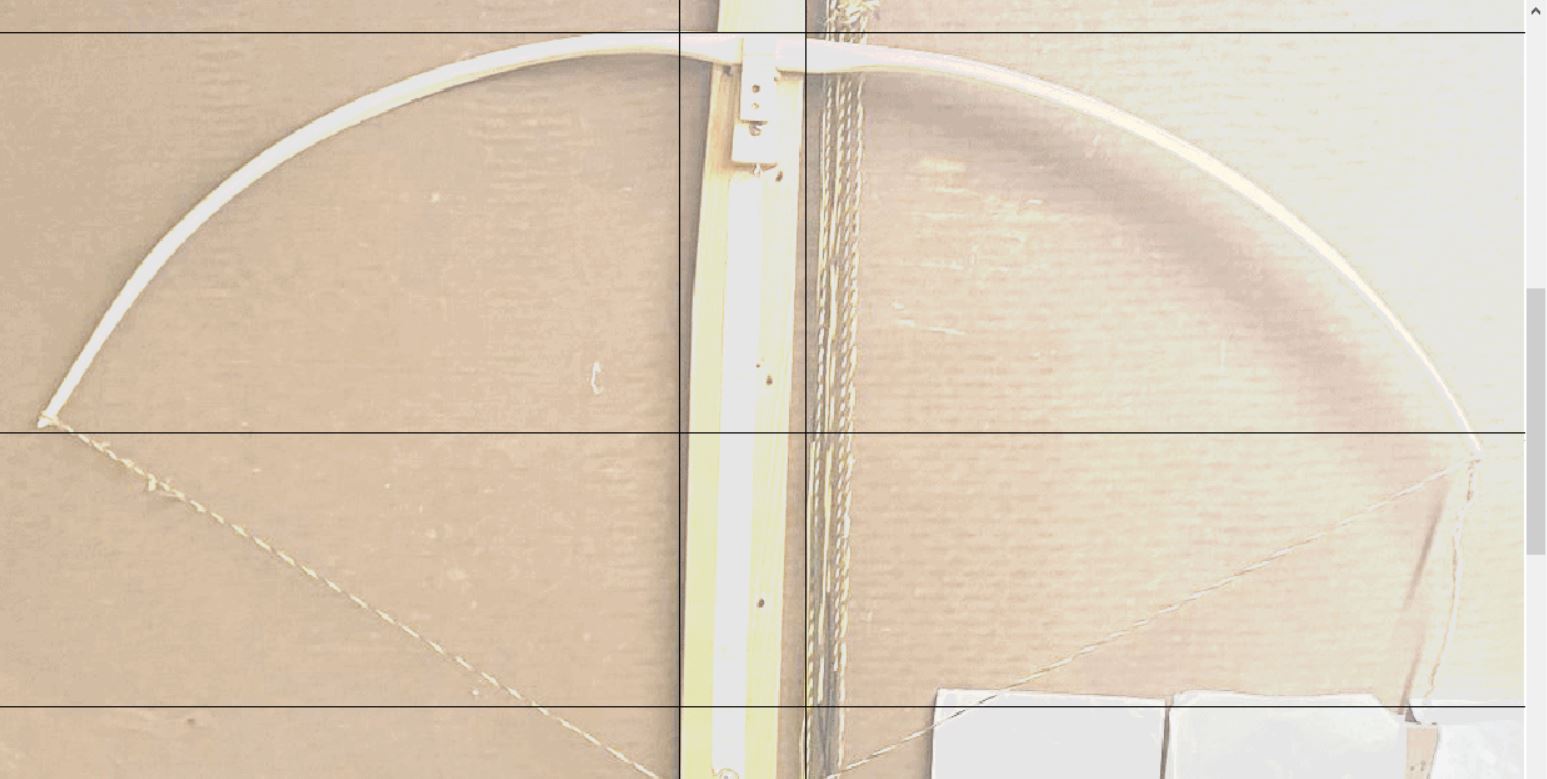 Der Bogen ist ein wenig stark, 50#+. Ich hatte Probleme auf dem nicht gefegten Boden nicht wegzurutschen beim Ziehen. Und dann im Vollauszug mit einer Hand das Schmartfon zu bedienen