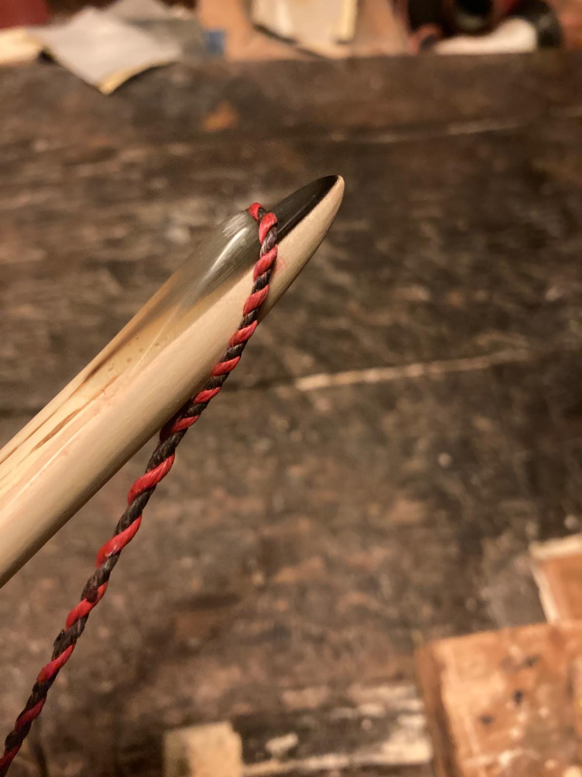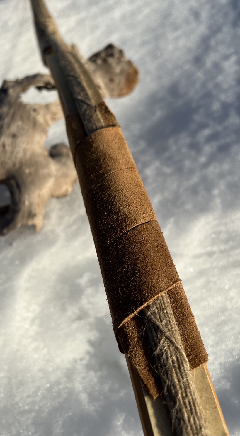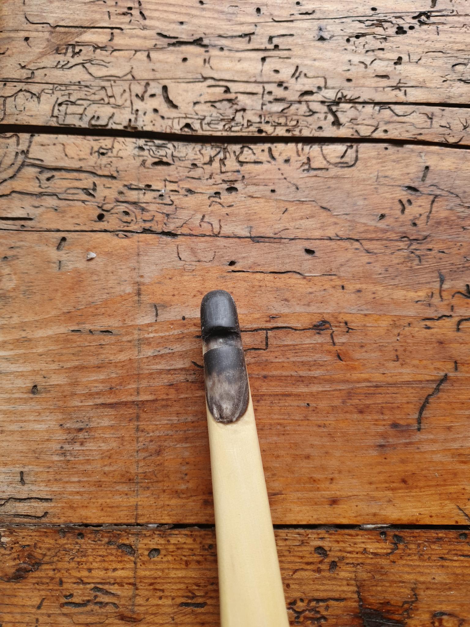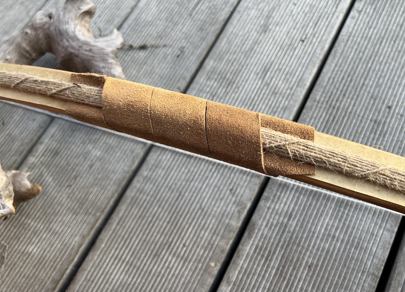 Holunder mittig gepleißt und mit Hanfwickelung verstärkt..
