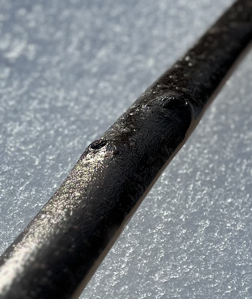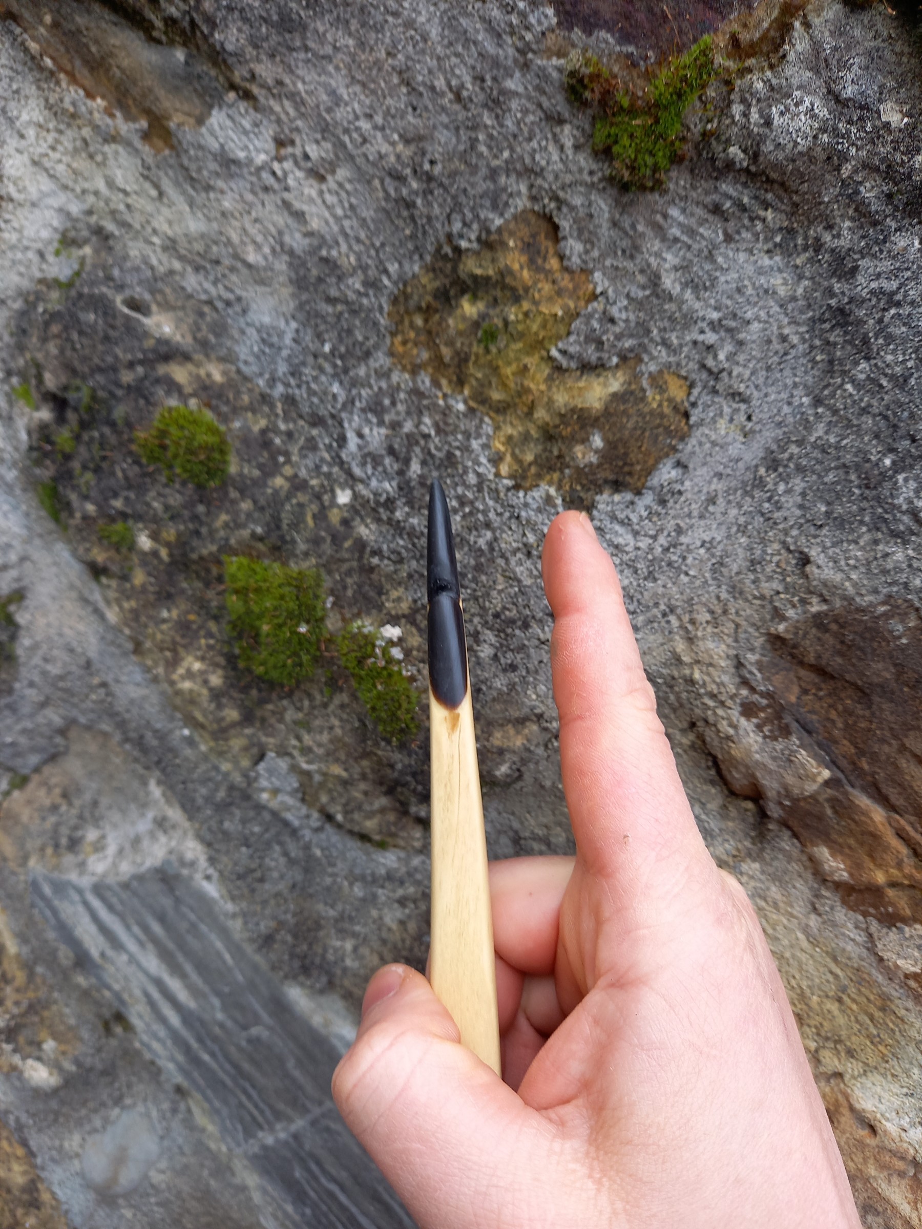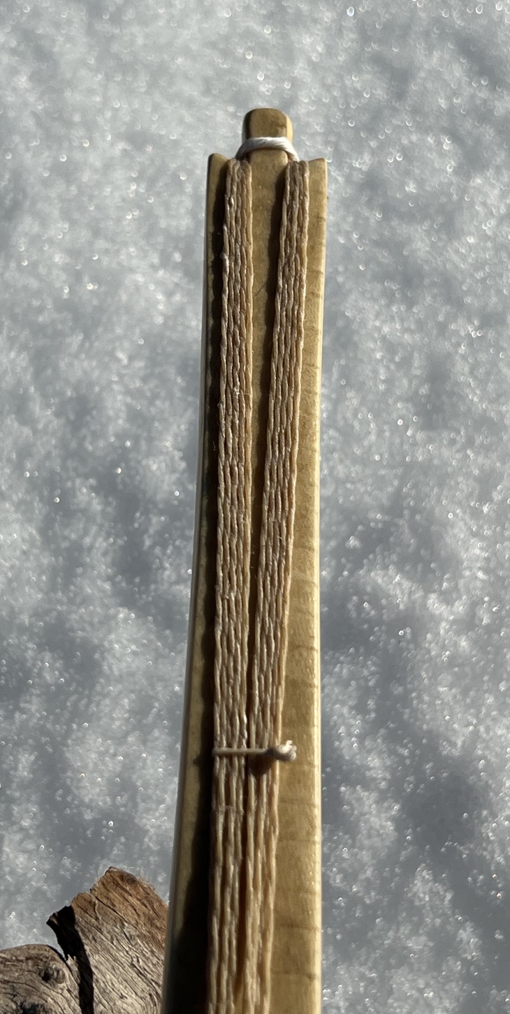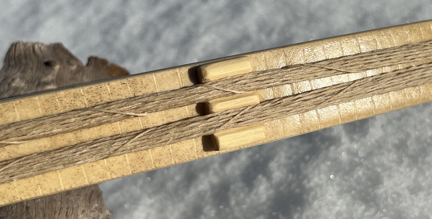 Holunder mittig gepleißt und mit Hanfwickelung verstärkt..