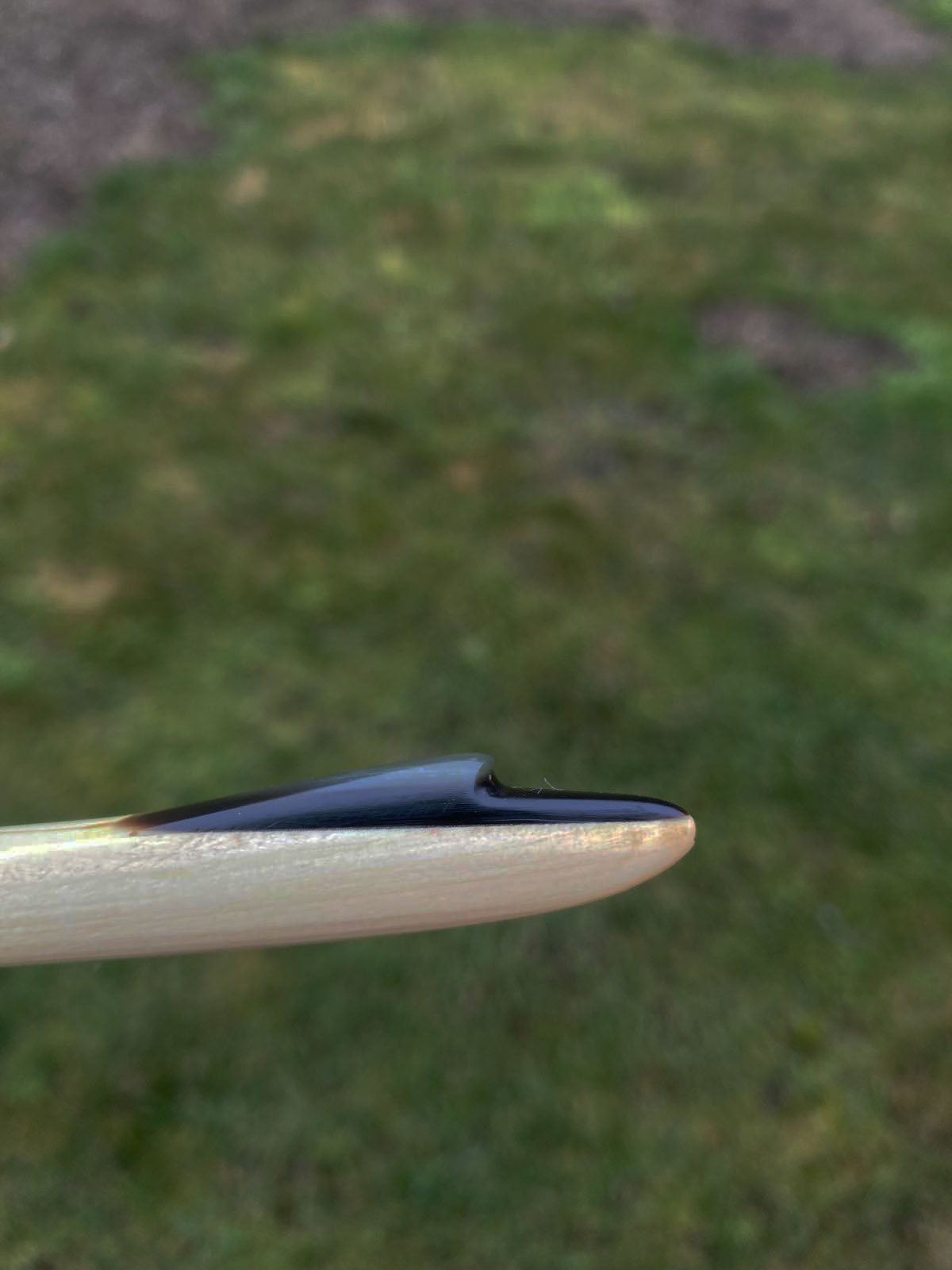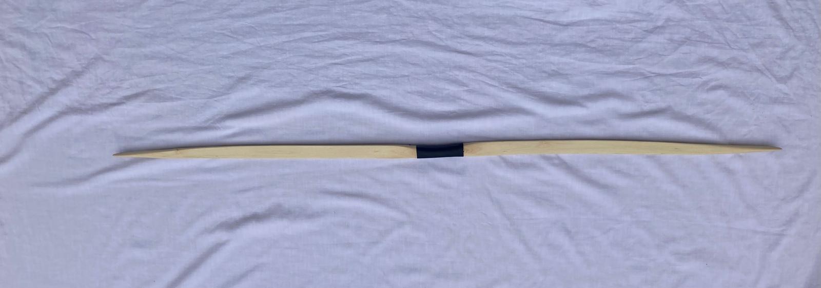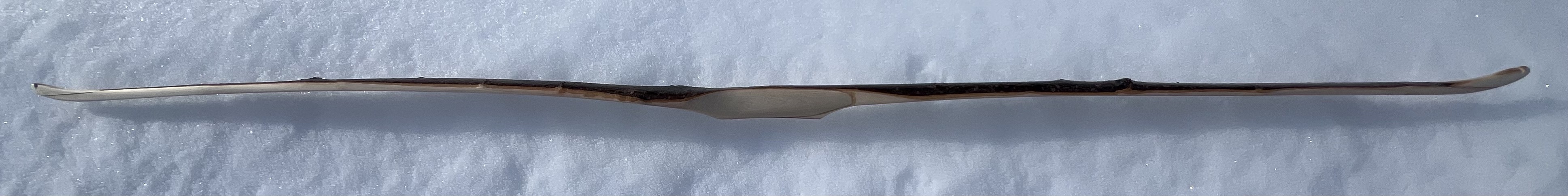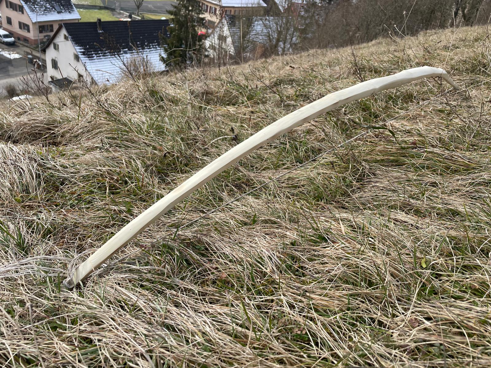 Mittelbogen: Schnelltrocknung in der Sauna, 98cm lang, 7cm deflex, in der Mitte 3,6cm breit und 1,9cm dick, an den Enden 3,5cm auf 1,3cm
