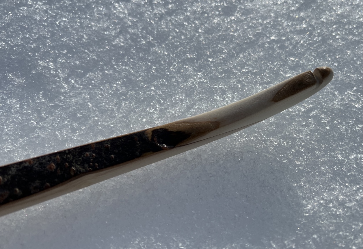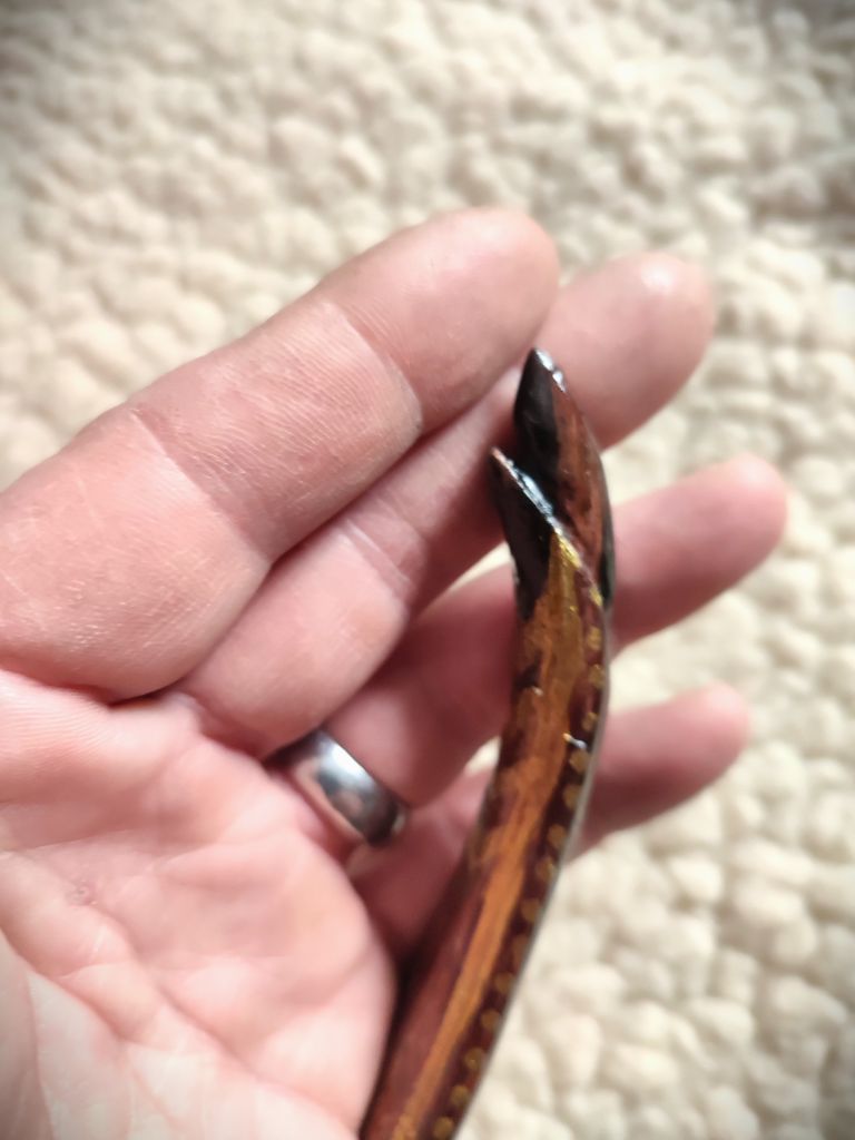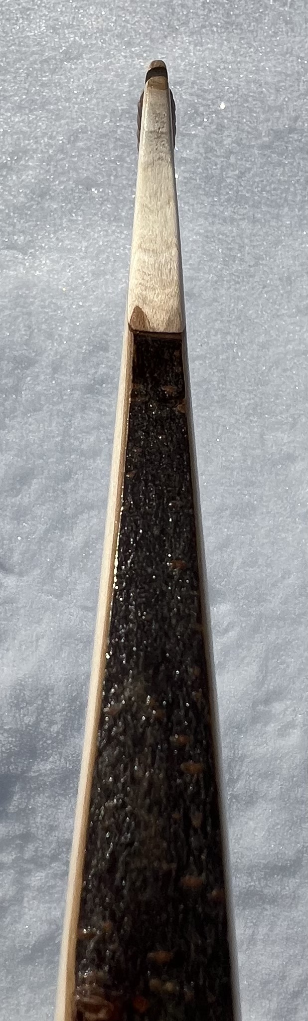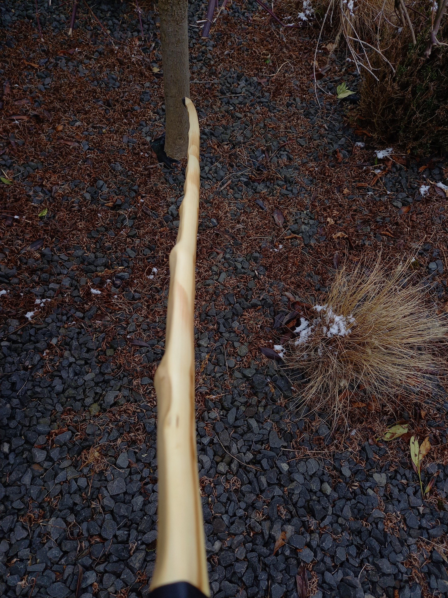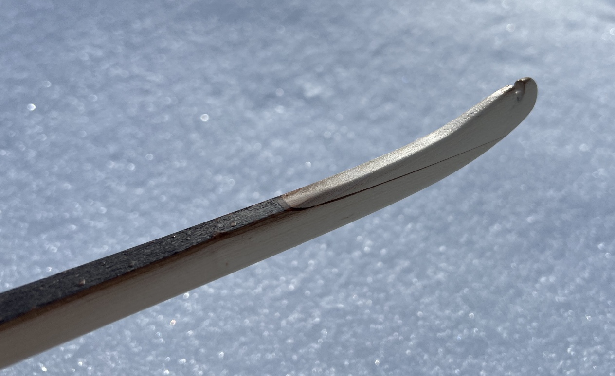 Mittelbogen: Schnelltrocknung in der Sauna, 98cm lang, 7cm deflex, in der Mitte 3,6cm breit und 1,9cm dick, an den Enden 3,5cm auf 1,3cm