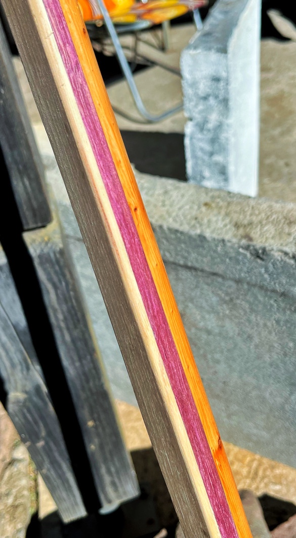 Allerdings hat es eine unglaubliche Rückstellkraft, was auch der Grund ist, warum es sowohl im Zug als auch im Druckbereich liegt. Gesichert am Rücken durch Hickory und entlastet am Bauch durch eine harte Eibe, die aufgrund ihrer 'drucktoleranz' das Holz der Wahl ist.