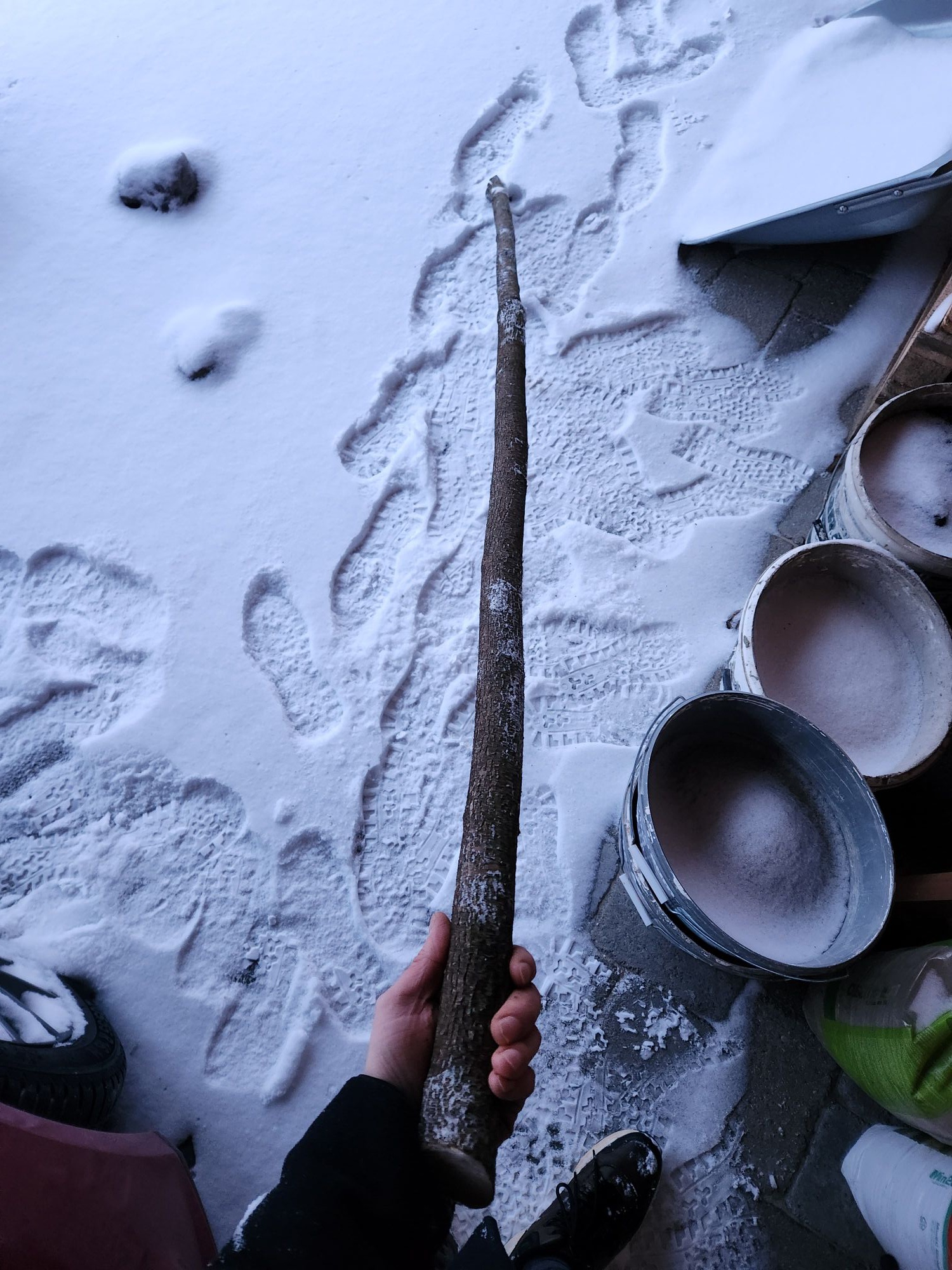 Mein Plan für heuer ist es, einen Stabbogen aus einem dünnen Hartriegelstämmchen aus meinem Garten zu bauen. Dafür hab ich schon vor ein paar Tagen dieses Stämmchen erblickt und jetzt geerntet. Ich könnte ihn nur von vorne ansehen da der Strauch einfach zu dicht ist und hatte gedacht der wäre in der anderen Richtung gerader. Naja mal schaun ob der was wird. Unterer Durchmesser: Gesamtlänge ist im Moment um die 195cm.